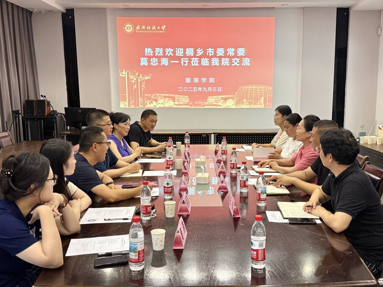 9月3日,桐乡市委常委、宣传部部长莫忠海一行莅临我院,双方围绕深化校地合作、推动产学研协同等议题展开深入交流。此次交流旨在促进武汉纺织大学服装学院与桐乡市濮院镇的资源对接,共同探索时尚产业与高等教育融合发展的新路径。服装学院陶辉院长、江学为副院长、胡琳琳主任、张俊主任、常青博士参加了此次会议。