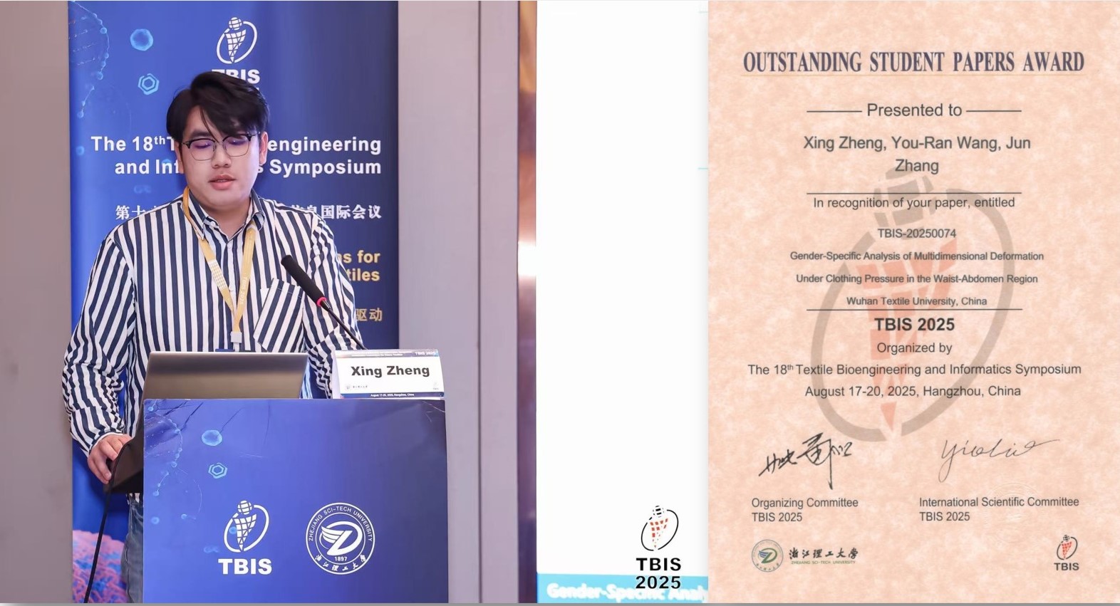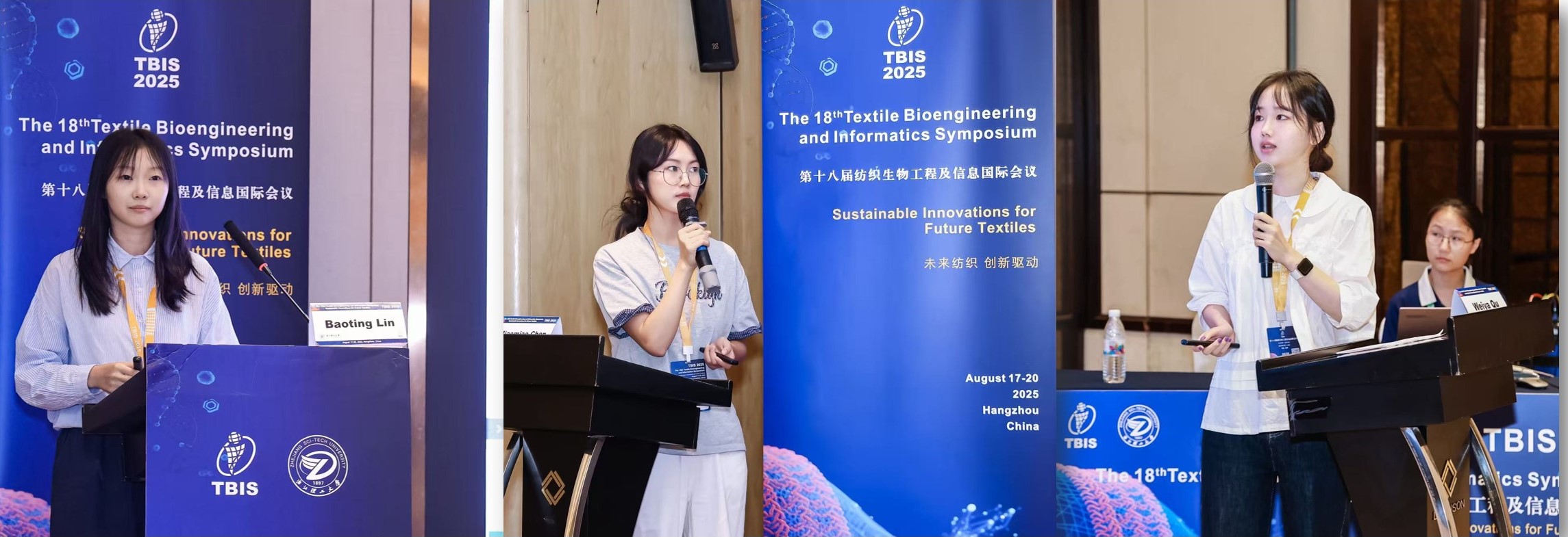 2025年8月17日至8月20日,第十八届纺织生物工程及信息国际会议(The Textile Bioengineering and Informatics Symposium, TBIS 2025)在浙江杭州召开。武汉纺织大学服装学院共有五位师生受邀参会并作口头报告,会上师生代表分享了学院在智能服装、服装舒适性及数字化时尚等前沿领域的最新研究成果,展现了我校在国际学术舞台上的科研实力与学术影响力。