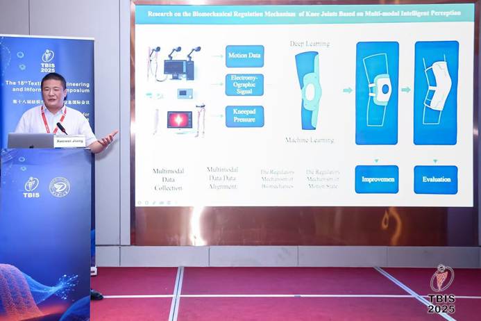 江学为教授应邀作邀请报告,报告题为“Research on the Biomechanical Regulation Mechanism and Equipment Development of Knee Joints Based on Multi-modal Intelligent Perception”,在“Smart Garment Manufacturing and Digital Information Technology”分会场上,江教授系统介绍了其团队在多模态智能感知与膝关节生物力学调控设备开发方面的研究进展,引起了与会专家的广泛关注与热烈讨论。