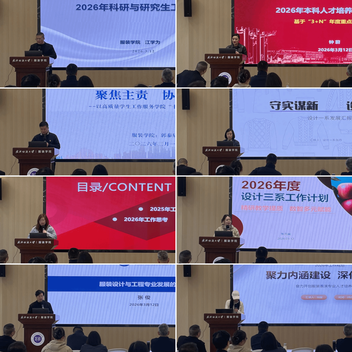 各系部主任立足专业特色与发展实际积极建言。设计一系主任张丹强调行业对接与动态课程调整;设计二系主任郭梦娜系统总结去年工作并部署新年计划,着力破解招生就业难点;设计三系主任张元美围绕优化教学、提升招生就业质量、深化产教融合规划发展;服装工程系主任张俊分析行业变革趋势,提出专业发展新方向与落地举措;表演系主任田甜则规划了以提升培养质量、强化实践就业、打造专业特色为核心的发展路径。