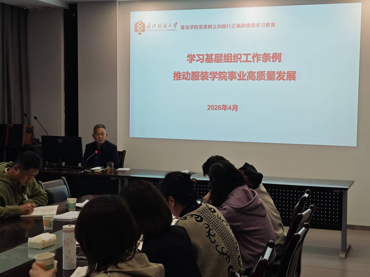随后,杜新年以《学习基层组织工作条例推动服装学院事业高质量发展》为题讲授专题党课。党课从《中国共产党普通高等学校基层组织工作条例》的基本情况、主要内容和基层党支部“七个有力”实践要求三个方面展开,系统解读《条例》修订的时代背景和重要意义,详细阐述院(系)党组织、教职工党支部、学生党支部的职责要求,重点讲解党员队伍建设、思想政治工作的具体举措,并结合学院实际对基层党支部落实“七个有力”提出明确要求。他指出,要把党建工作与教学、科研、育人等业务工作深度融合,以高质量党建引领学院事业高质量发展;各支部要强化政治功能,抓实“三会一课”、组织生活会等基本制度,充分发挥战斗堡垒作用,党员要发挥先锋模范作用,切实把树立和践行正确政绩观融入立德树人全过程。