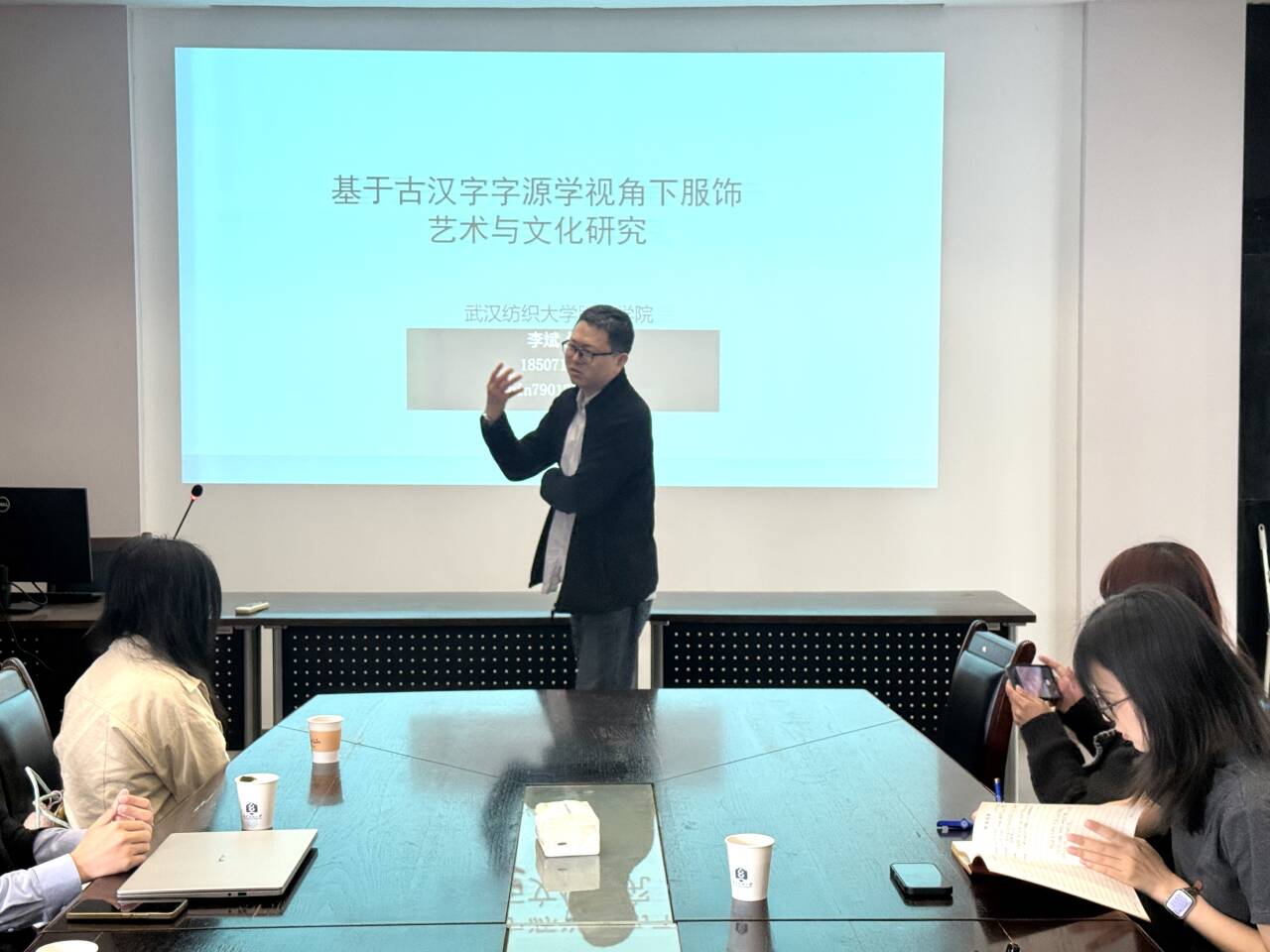 随后,李斌教授带来《基于古汉字字源学视角下服饰艺术与文化研究》专题讲座。李教授从古汉字字源学切入,深度解读古汉字与传统服饰艺术、文化的内在联系,剖析服饰背后的历史文化内涵,分享独特的服饰文化研究视角与思路。现场师生认真聆听、积极交流,探讨服饰文化传承与专业研究方向,学术氛围浓厚。