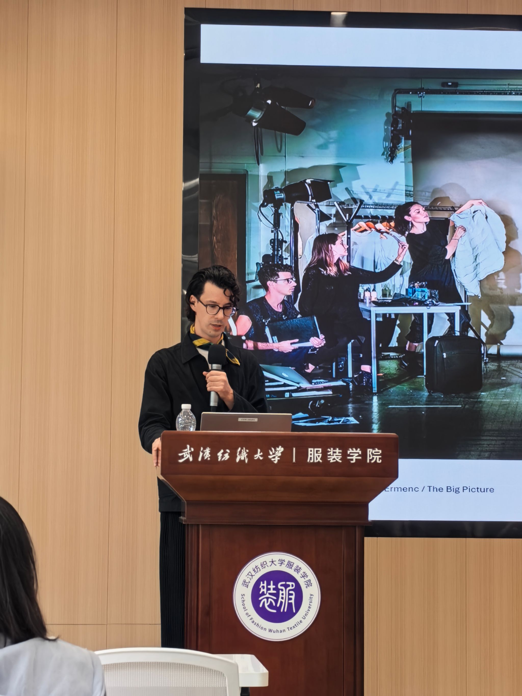 Anze Ermenc以“时尚影像与实验性创作”为主题,系统讲解了从概念开发、拍摄执行到后期制作的完整创作流程。他结合与曼彻斯特艺术馆合作的项目案例,展示了传统工艺与3D打印、AI、激光蚀刻等数字技术相融合的多元创作手法,强调时尚创作需注重跨界协作、多元实验与大胆创新,鼓励学生在实践中突破常规,构建兼具个人特质与时代精神的创作风格。