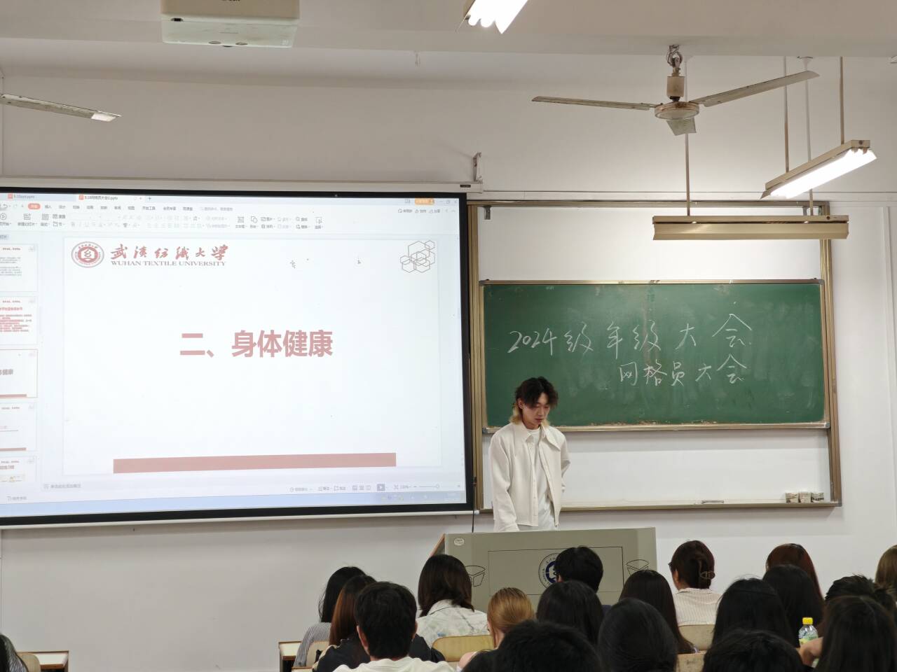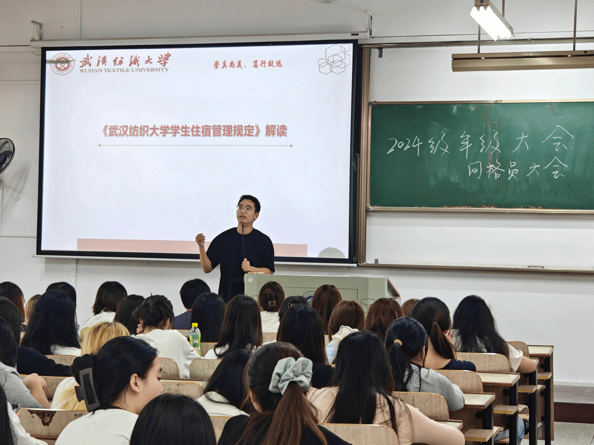 为加强学生宿舍管理,提升学生安全意识与自我管理能力,营造安全、文明、和谐的校园生活环境,服装学院召开“共建安全文明宿舍·同筑和谐美好纺大”2024级年级大会。