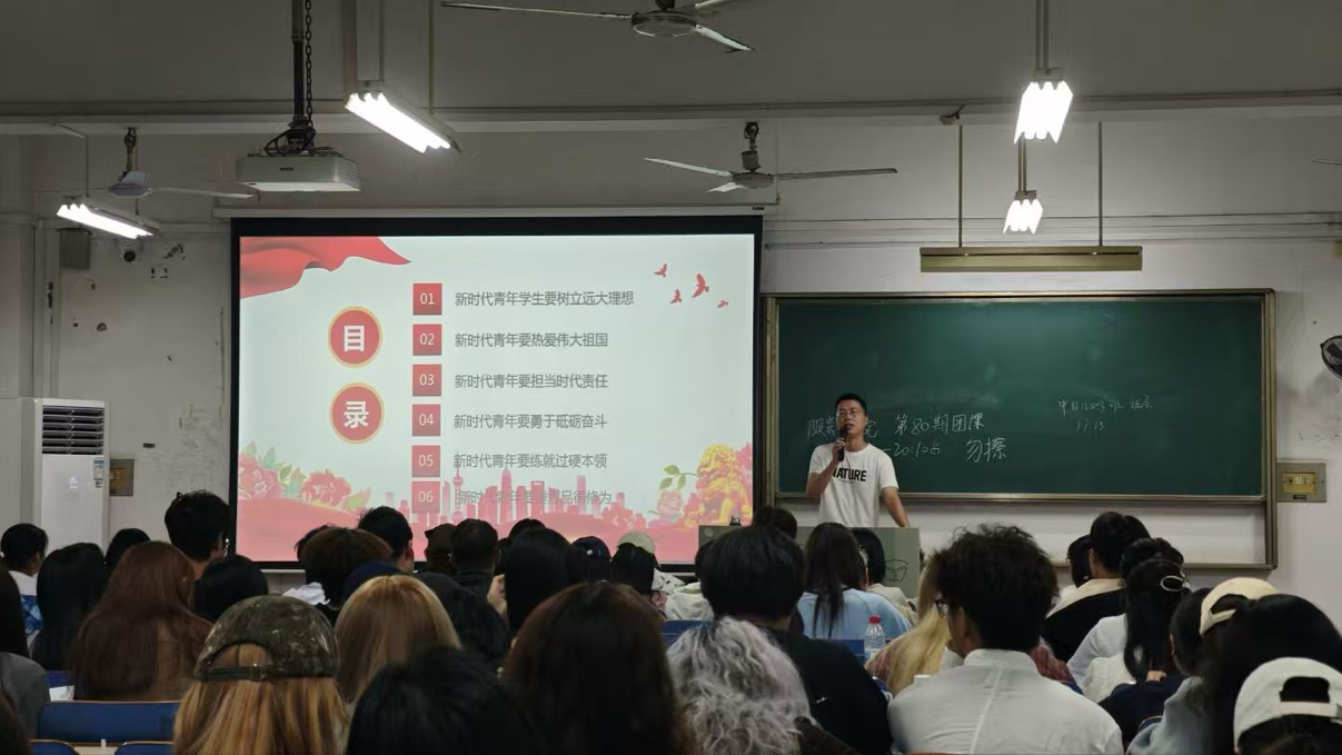 10月12日团课第三讲在5408举行,本次团课由服装学院夏书明老师主讲。夏老师以“做新时代青年”为主题,从树立理想、热爱祖国、担当责任、砥砺奋斗、练就本领和锤炼品德六个方面展开讲述。他系统阐述了新时代青年应当坚定理想信念、勇挑时代重担,并将个人理想融入国家发展大局。通过明德、立德、修德三个层面,夏老师进一步引导同学们提升道德素养、锤炼品德修为。最后,他寄语全体同学珍惜时代机遇,不负青春韶华,努力成长为有理想、敢担当、能吃苦的新时代青年。