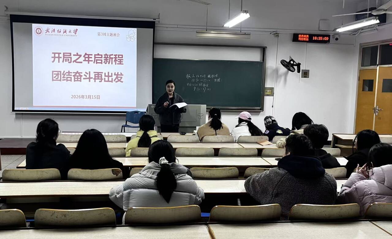 为深入学习贯彻2026年全国两会精神,引导学子锚定“十五五”发展蓝图找准成长方向,将个人专业发展与国家战略需求紧密结合,3月15日,武汉纺织大学服装学院各班级有序开展第二周“开局之年启新程 团结奋斗再出发”主题班会,以思想引领明方向,以实干笃行聚力量,推动新学期育人工作走深走实。