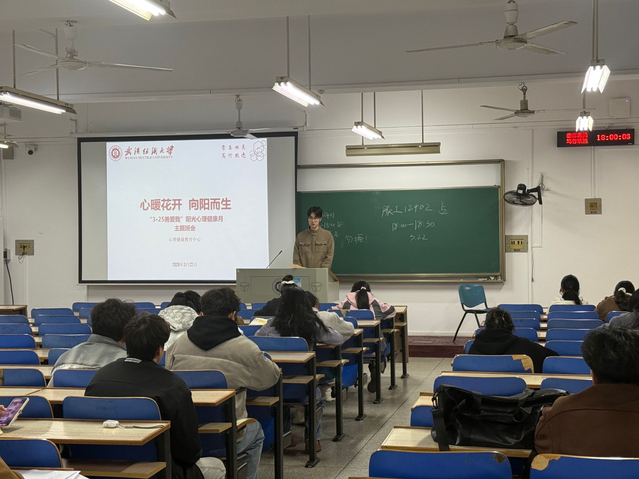 结合“3·25善爱我”阳光心理健康月,各班级同步开展“心暖花开 向阳而生”心理主题班会。通过心理小游戏、情绪分享、压力疏导等环节,倡导学生善待自我、悦纳自我,以积极阳光的心态拥抱新学期学习生活,为思政教育注入温暖关怀。 同时,班会持续推进校园管理细节落实:组织学生维护宿舍清洁卫生,深化爱国卫生运动成效;面向生活委员、寝室长开展消防安全教育培训,通过案例讲解、实操演示等方式,强化消防安全意识与风险防范能力,全方位保障学生校园生活安全。