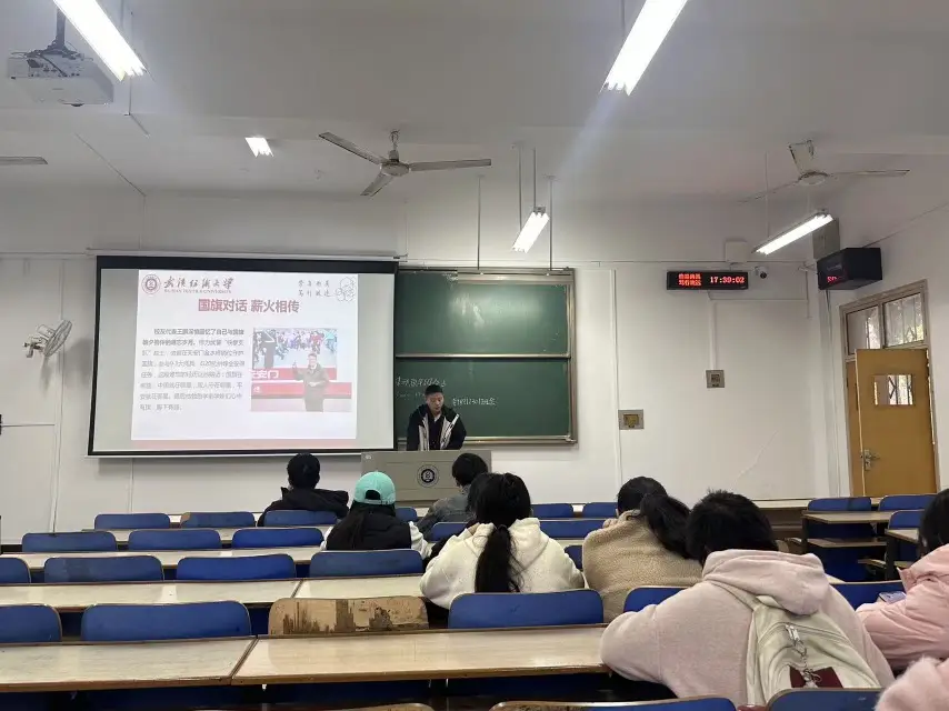 随后,核心环节“国旗与国旗的对话”主题思政课正式展开。各班级组织深入学习徐卫林院士、校长傅欣及师生代表发言精神,围绕“以国旗为航标,赴青春之约”展开研讨。通过观看国旗相关影像资料、分享国旗故事、解读精神内涵等形式,引导广大学生感悟国旗承载的家国情怀与使命担当,树立深耕科研、勇攀高峰的信念,鼓励同学们以创新精神投身专业实践,把个人学业规划与国家战略需求紧密结合,让科技创新成为青春最亮丽的底色。